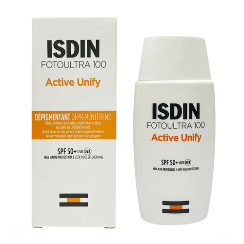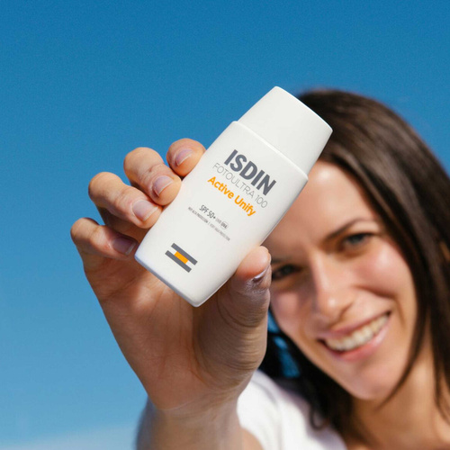 کرم ضدآفتاب بدون رنگ ایزدین SPF50 مدل FOTOULTRA 100 ACTIVE UNIFY مناسب انواع پوست، حجم 50 میلیلیتر